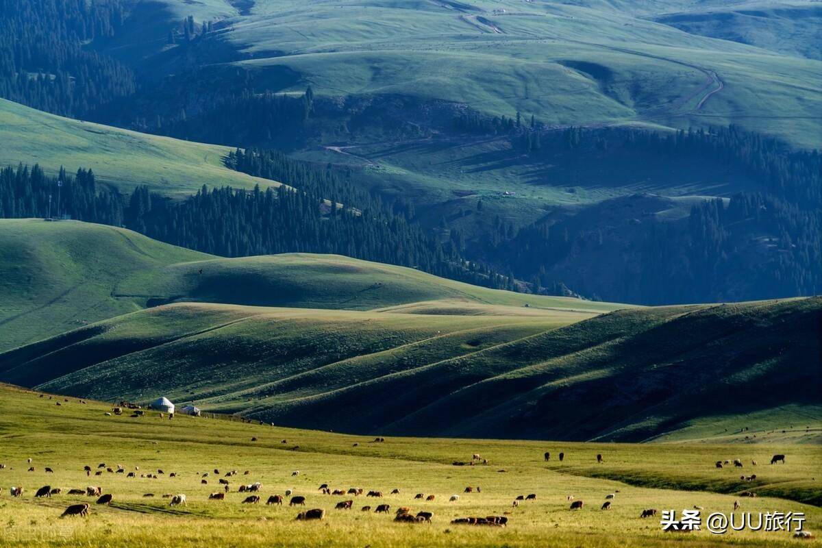 既然称作牧道,这条路的环境就相当野生。新疆把最好的自然景观给了伊犁,伊犁把最壮丽的一部分给了伊赛牧道。穿过托乎拉苏大草原翻越天山的捷径,将雪山、草原、河流、森林、牧场、湖泊,全都集中在一起,简直就是浓缩版的伊犁,每一脚油门,每一口呼吸,都让人心旷神怡。
