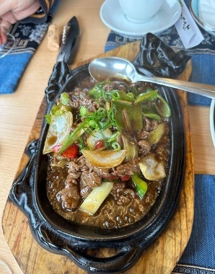 这是鹿肉,本来听说鹿肉很鲜,但是我吃的感觉没有第一道羚羊肉鲜。鹿肉的口感反而有点像牛肉,好吃,但是没有野生羚羊肉那么惊艳。
