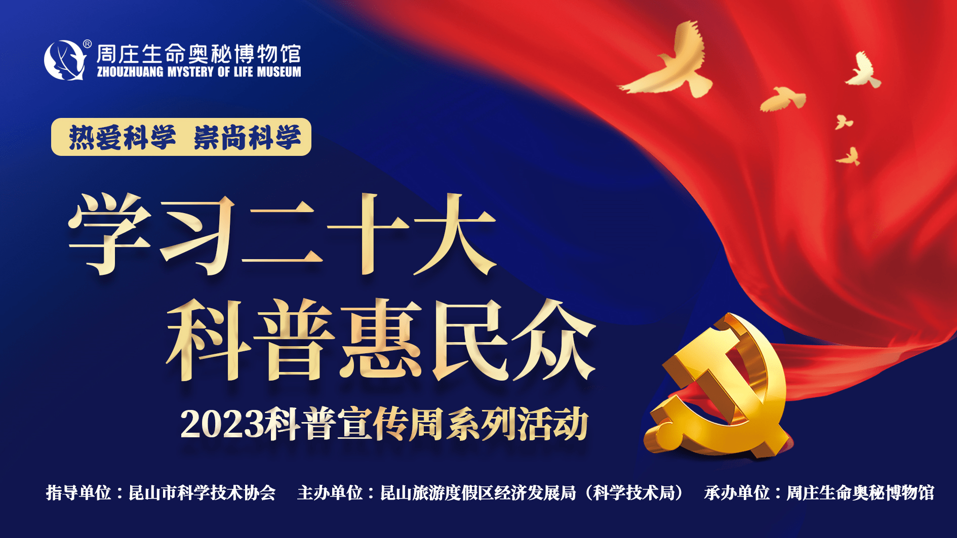 昆山旅游度假区2023年科普宣传周活动以“学习二十大 科普惠民众”为主题,将通过科普巡展、科技咨询、科普讲座、科普旅游、科普阅读、科普绘画、创意涂鸦等多种形式开展进行,旨在深入学习宣传贯彻党的二十大精神,普及科学知识,引导市民树立热爱科学、崇尚科学的社会风尚。