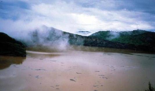 不过因为这个水柱一切都变了。随着这个水柱喷射出来的还有大量的气体,这些气体都是二氧化碳和一些其他稀有气体。这些其他让整个湖面,变得烟雾朦胧,而且十分的压抑。虽然看起来更像是仙境,但是这是会杀人的仙境。