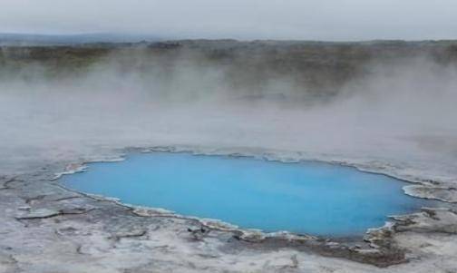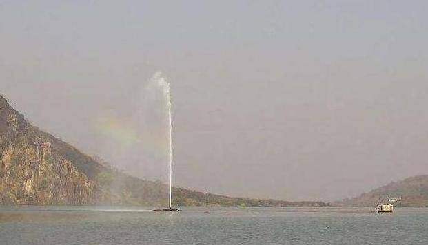 但是上面是湖泊,只好从湖泊中心喷射出水柱,其实就是火山喷射的大量气体冲击形成的水柱。