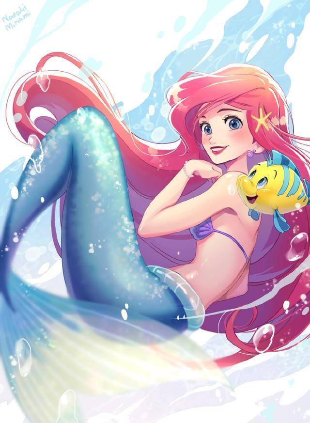 迪士尼经典动画《小美人鱼》中的爱丽儿,同样是无数小女生最青睐的迪士尼公主,凭着一头撩人的绯红色大波浪长发,以及古灵精怪的活泼个性,让爱丽儿成为迪士尼公主中最具活力的代表。手绘风下的爱丽儿身姿更为灵动轻盈,这标志性的甩尾姿势,仿佛要将她的美丽和俏皮全都展现出来,散发出无比欢快的气息,就连身旁的小鱼儿都看得眉开眼笑。