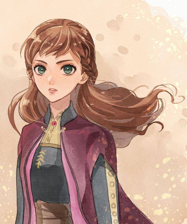 《冰雪奇缘》中的女主角之一安娜,本身是善良美丽的小公主,却由于姐姐冰雪女王艾莎过于强势,而让自身的存在感显得薄弱起来。不同于动画里柔弱的公主形象,手绘风下的安娜自带“强势光环”,这披发的潇洒样子,炯炯有神的翠绿色双目,这样坚毅的安娜公主,简直浑身透着王者的气息,如此飙的造型真是罕见!