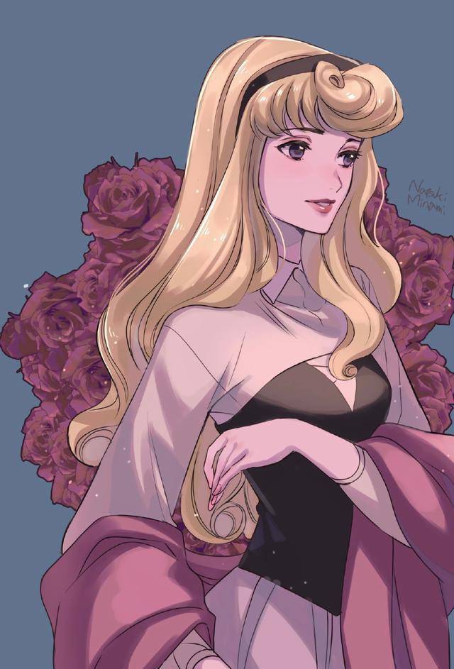 《睡美人》中的女主角爱洛公主,作为迪尼斯公主系列的第三位登场的成员,以修长的身材和优雅的风度塑造最美的公主为前提,原型是著名英国女演员奥黛丽赫本,难怪爱洛身上的贵族气息会如此强烈。手绘风下的爱洛比动画版看起来年轻了不少,减去几分成熟的气息后,让爱洛看上去更像一位贵族少女,即便看起来依旧比其他迪士尼公主年长,但仍然是一位浪漫又内敛的美人儿!这样优雅的爱洛,谁能不爱呢?