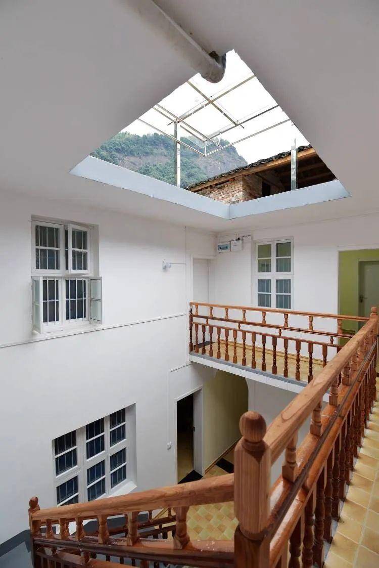 民宿共分为上下两层,房顶还特别参考了天井的装饰,用玻璃替代砖瓦,阳光投射下,建筑内也格外明亮。
