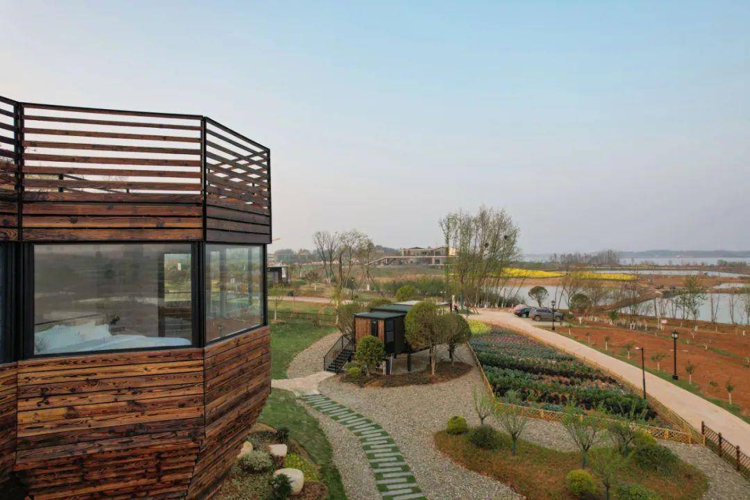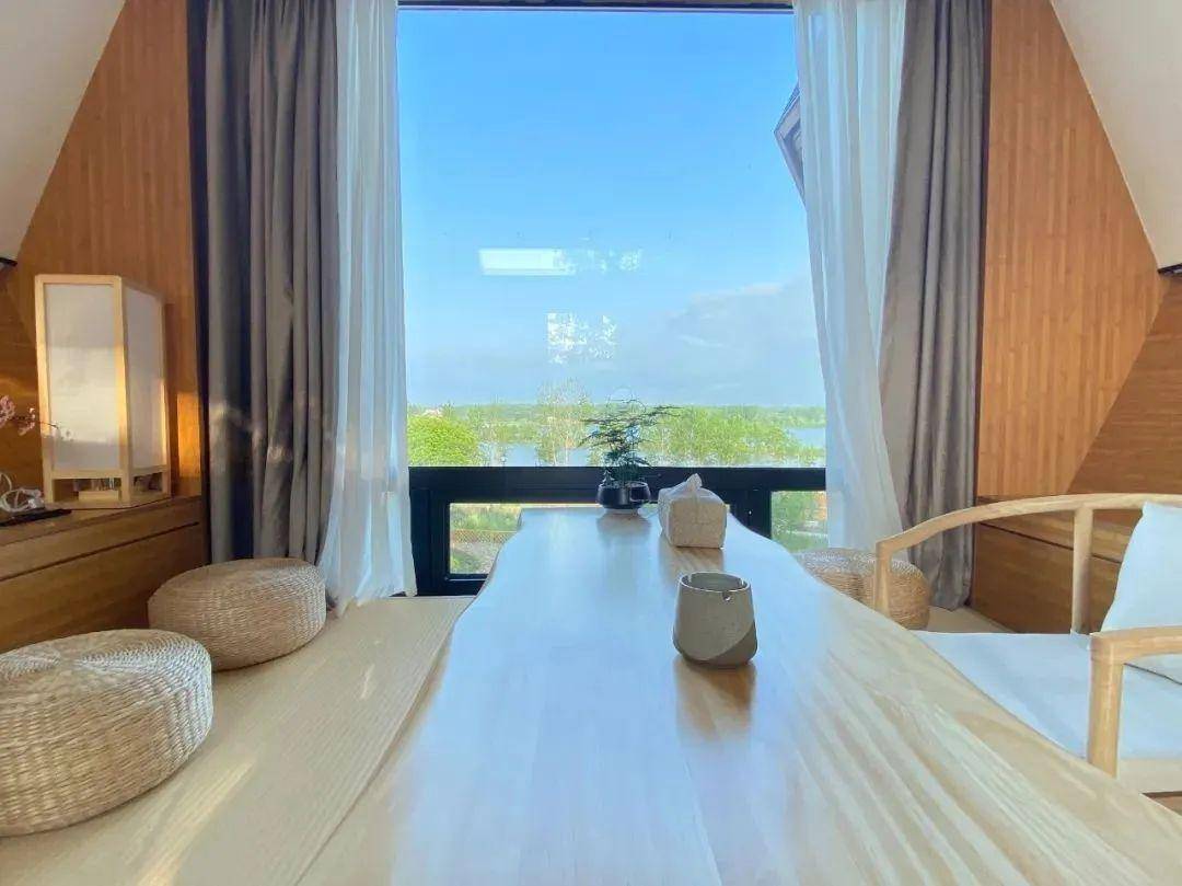 站在大片的玻璃落地窗前,视野十分开阔。日出、日落、田野、湖色一览无余。踱步露台上,抬眼便是“悠然见南山”的自在。