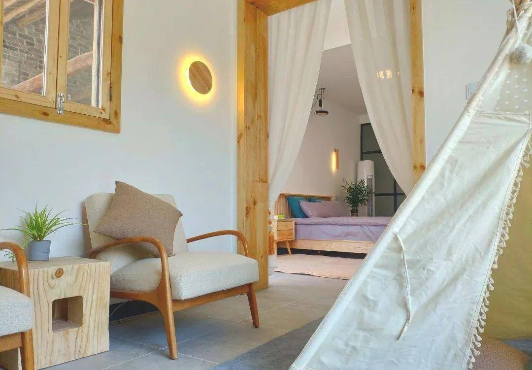 而在民宿的卧房内,现代化基础设施齐备,每间卧房各具特色,简单素雅的色彩让紧绷的思维能够安宁放松下来,木香、竹香、花香……许你一夜好眠。