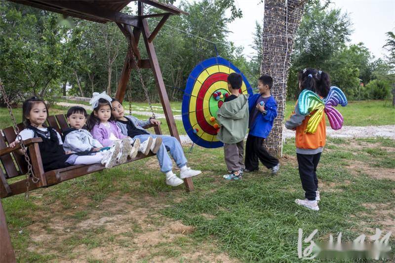 5月21日,小朋友在邯郸市复兴区前牛叫村新建成的露营基地游玩。