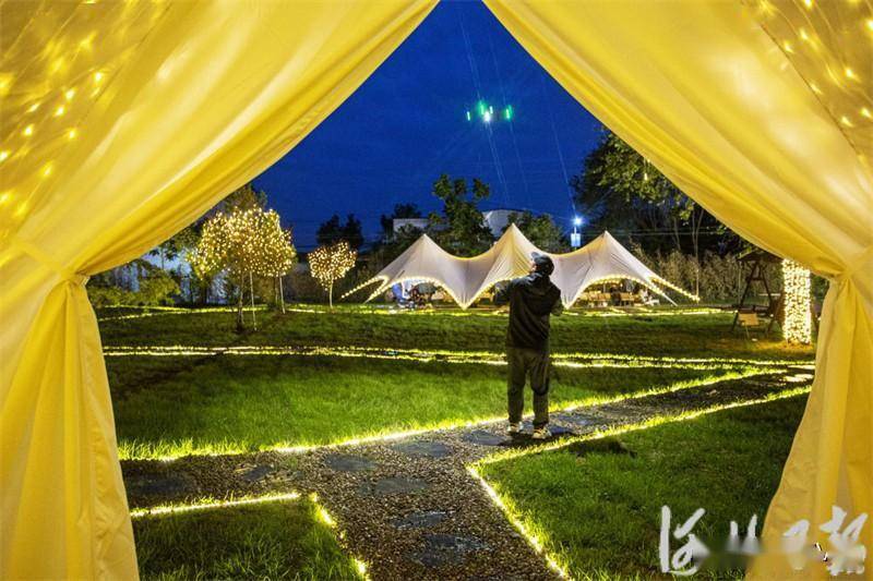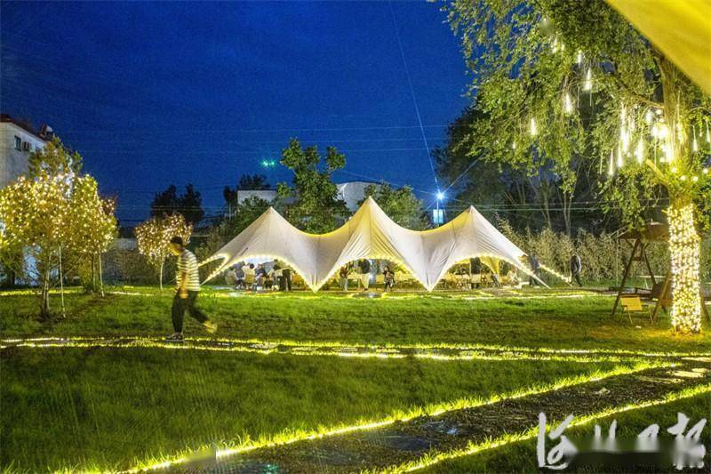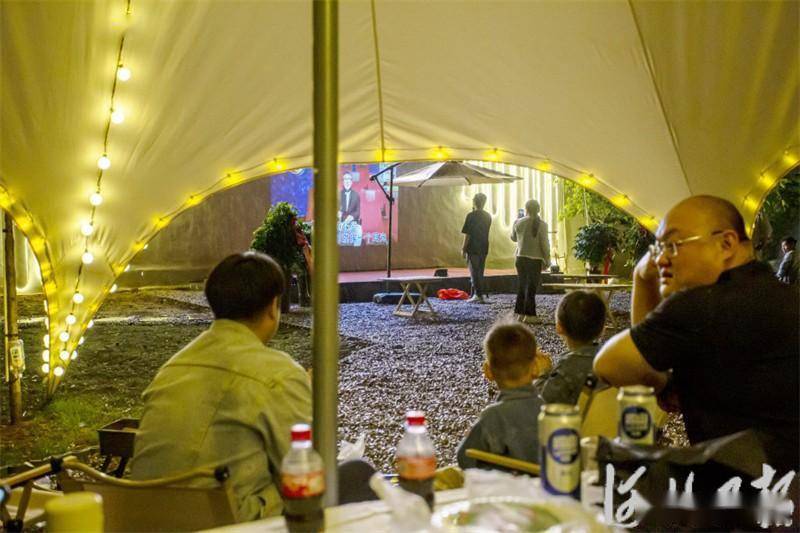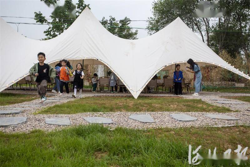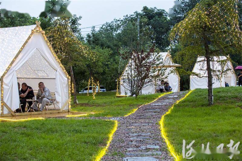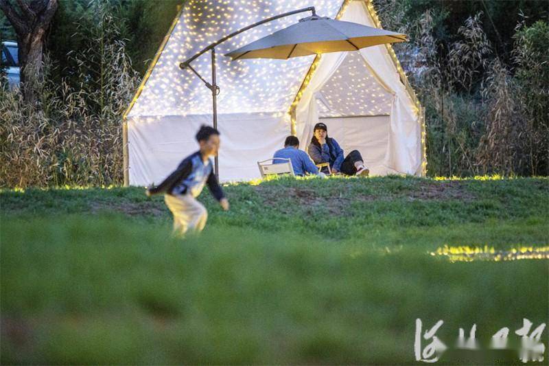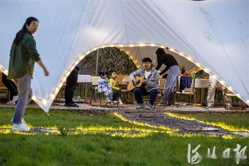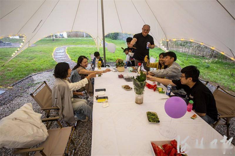沁河畔露营基地内设大型天幕、露宿帐篷、KTV、自助烧烤、儿童游乐等区域,打造吃喝玩乐学于一体的露营基地,以一顶顶帐篷留住了家门口的“诗和远方”。