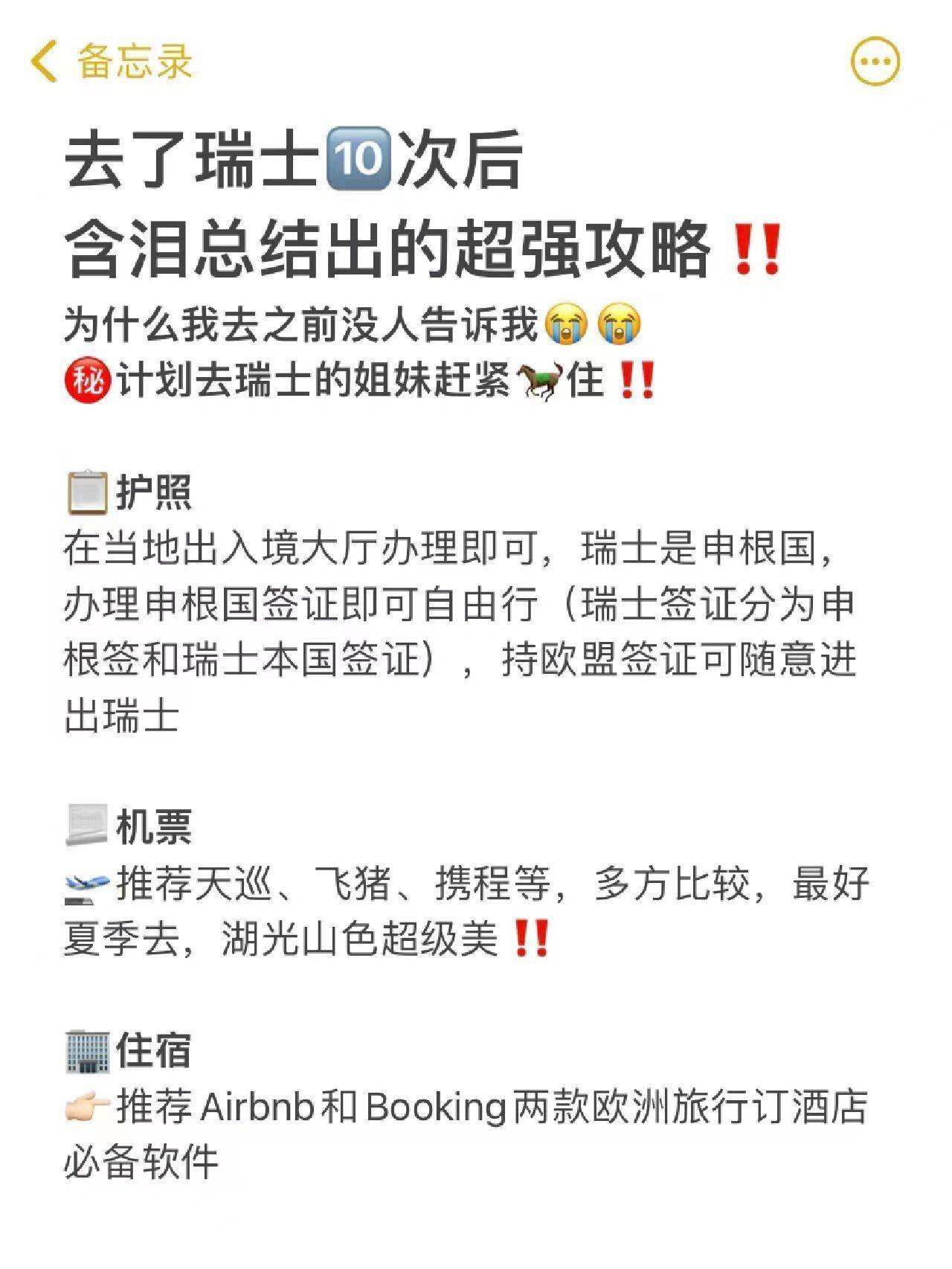 原标题:去瑞士玩了10次,总结出的超强攻略!存下吧