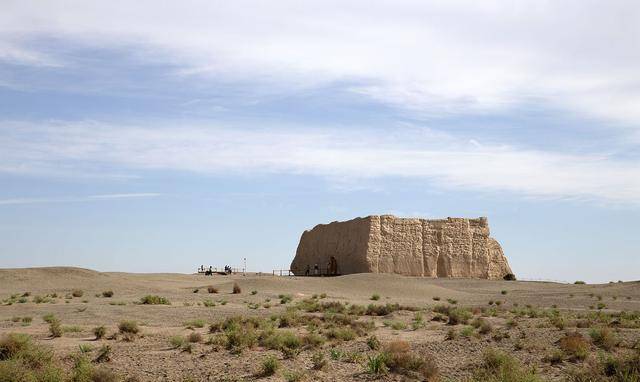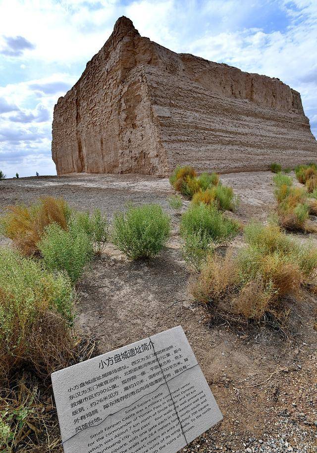 此城是一座四方形的小城堡,矗立在东西走向戈壁滩狭长地带的砂石岗上。