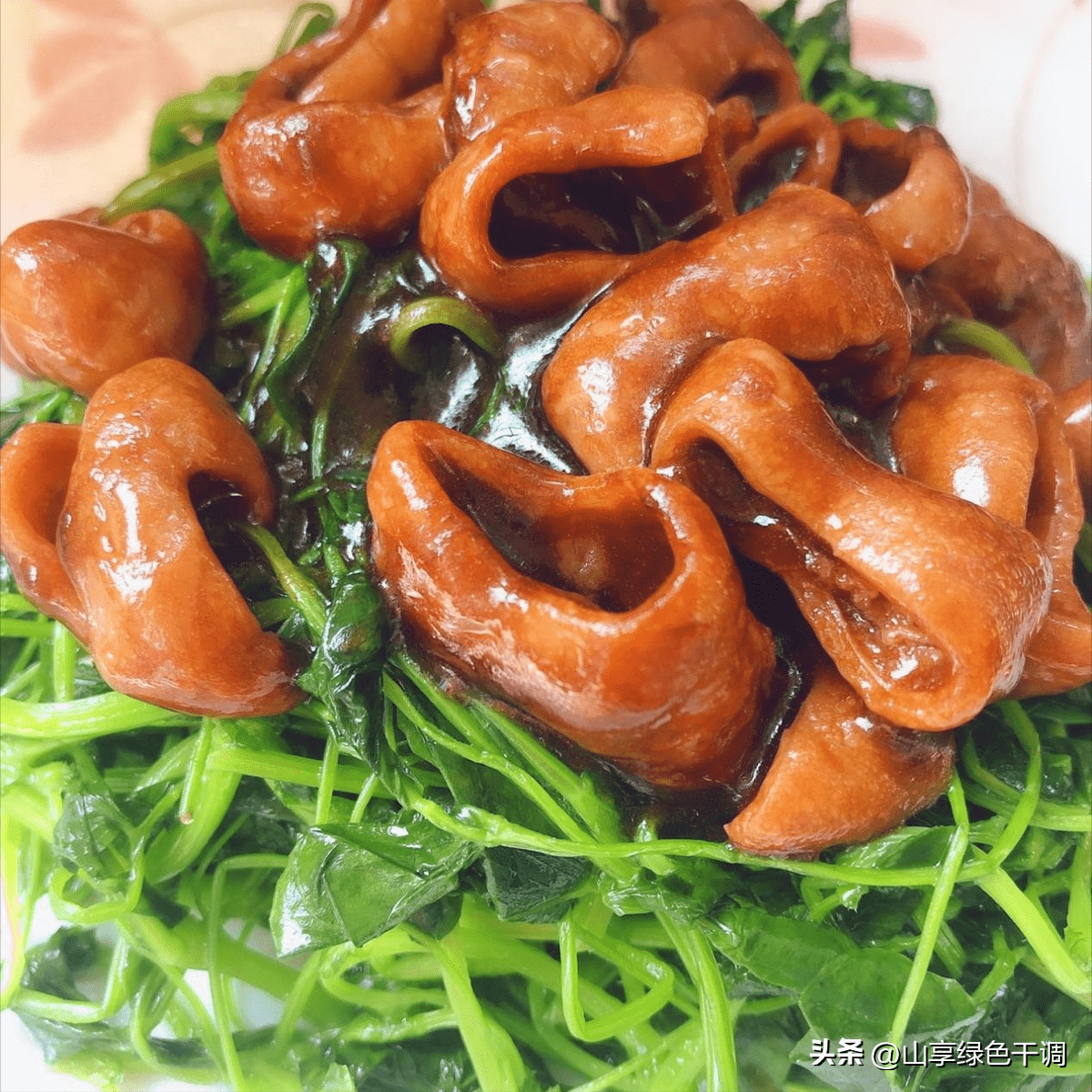 草头是一种蔬菜,圈子则是代表了猪大肠。选用猪排泄口的猪大肠,用浓油赤酱的做法烹饪熟了,盖在草肉上,名副其实的草头和圈子。
