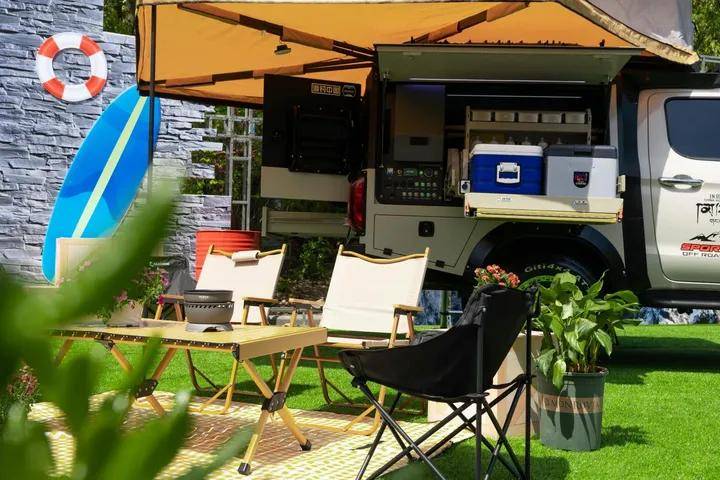 全新悍途露营车打开皮卡车型百变基因的同时,还提供完备的生存保障。60L供水设计满足野外独立生存需求,可以洗菜、洗澡,满足户外生活需求;420W太阳能供电系统、市电接口、行车充电(配备优质3.6kW锂电池系统),可满足长时间野外生存的电力保障;车身顶部设重物行李托架,满足60kg内物资的安全托运。