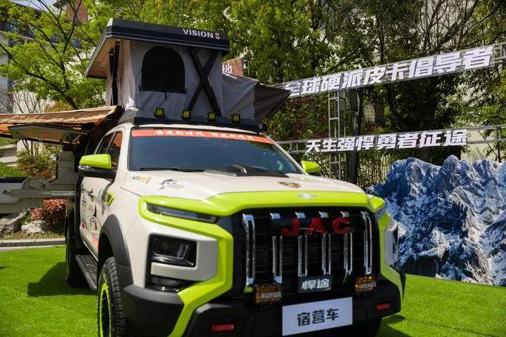 远离城市喧嚣,约上三五好友,走近湖畔草坪,搭好一顶帐篷,摆上桌椅板凳,或谈天说地,或野餐垂钓,或仰望星空……如今,“自驾+露营”火遍大江南北,皮卡宿营车正成为亲近自然、享受生活的好选择。在2023上海车展上,江淮皮卡重磅推出全新悍途宿营车,凭借硬派潮酷的颜值、强劲澎湃的动力和便捷实用的改装,为户外宿营带来无限精彩,引领皮卡市场新潮流。
