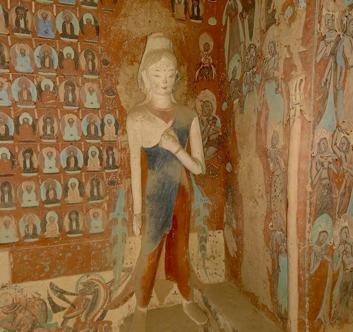 敦煌莫高窟经历了七朝的修建和历代文化的积淀,融合了壁画、泥质彩塑、洞窟建筑等多种艺术形式。这种源自时间和艺术实践的演化,赋予了敦煌莫高窟独一无二的美感。