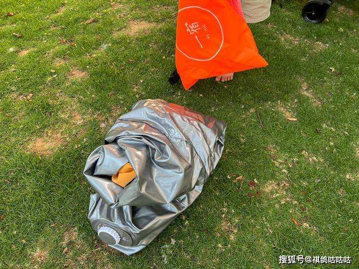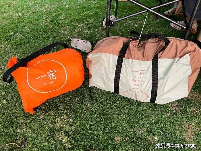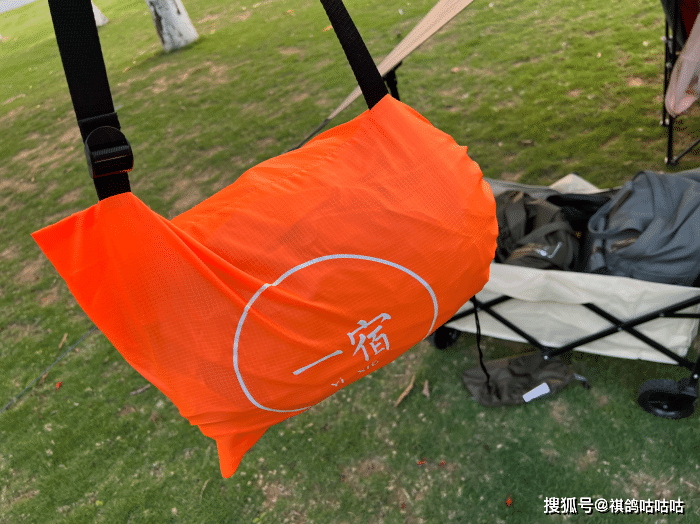 自动充气沙发的大小就比帐篷小了很多,而且收纳袋是橙色,活力十足,上面有一宿的字印,同样也是黑色的手提袋。