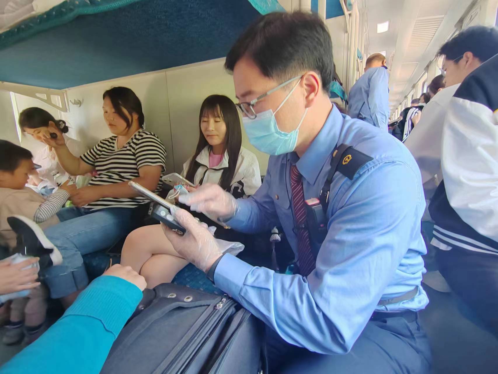 瞧……我们是郑州客运段京二四组奋斗在一线岗位的列车乘务员,我们正严阵以待,为每一位乘坐我们列车的出行的旅客提供优质周到的服务。