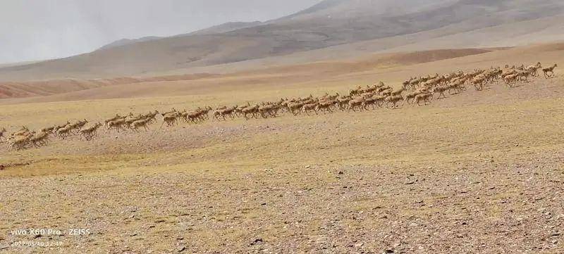 2023年进入羌塘开展第一次联合巡护过程中发现的藏羚羊群。