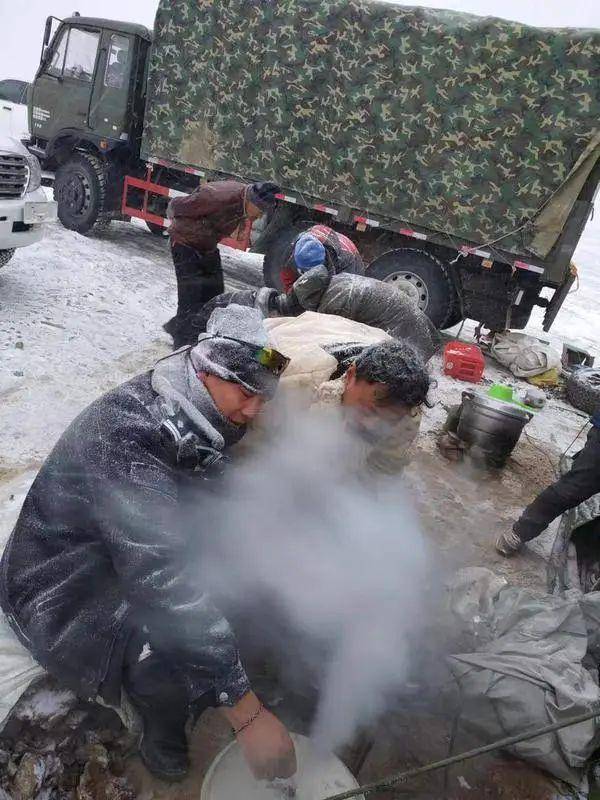 2023年进入羌塘开展第一次联合巡护途中在野外就餐。