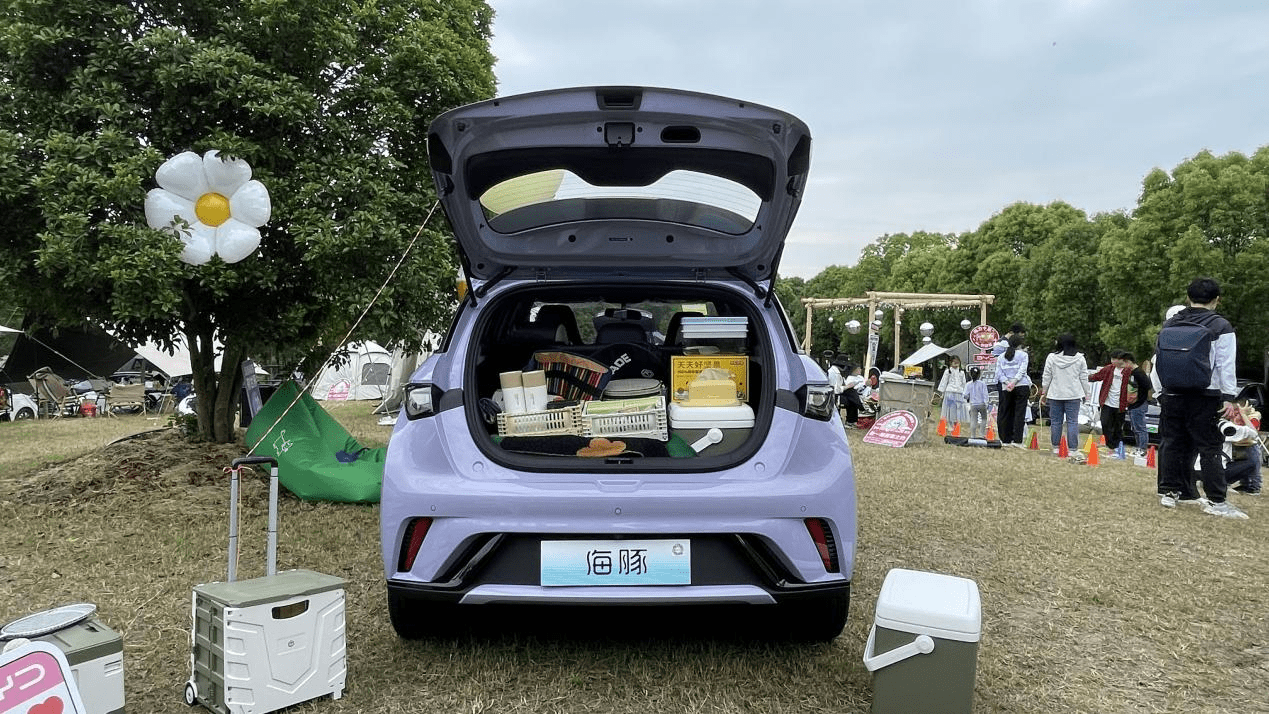 比如在这一次的露营活动中,现场的比亚迪海豚可以在后备厢位置轻松放下大家所需的野营装备,在户外露营的时候,这台小车也是足够实用。