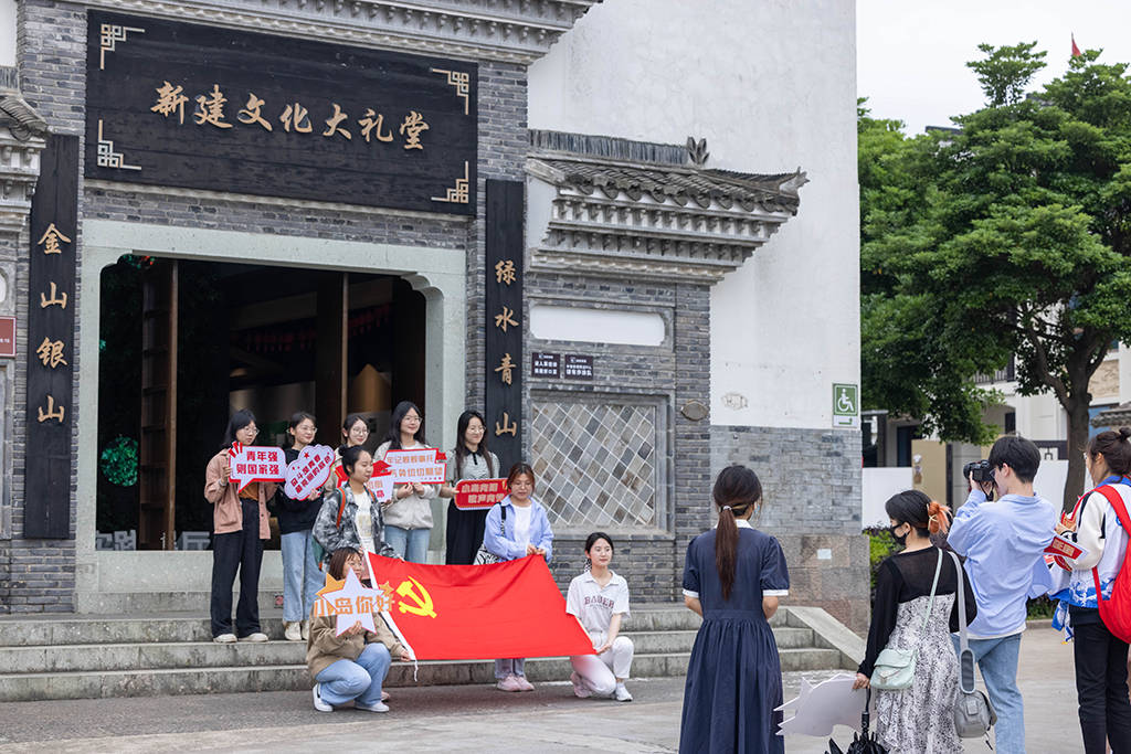 浙江省舟山市定海区新建村,大学生在东海百里文廊新建村进行研学和党建活动。