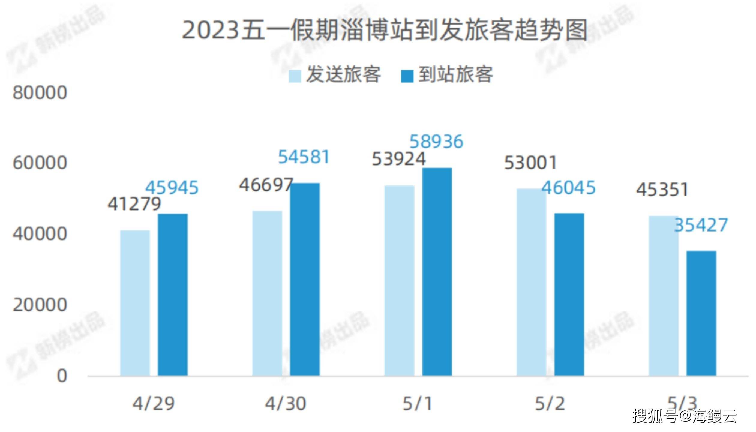 据淄博市文旅局数据,五一期间淄博单日到站旅客人次最高达5.8万人次,到发游客合计超48万人次(淄博2022年城镇常住人口为352.37万人)。