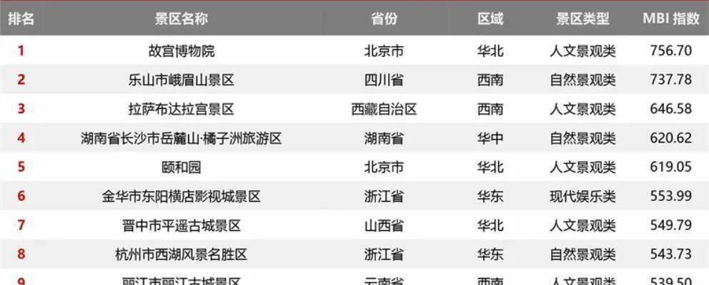 而在点评指数跻身前十的景区分别是:广州市长隆旅游度假区、故宫博物院、上海野生动物园、西安市秦始皇兵马俑博物馆、上海东方明珠广播电视塔、颐和园、杭州市西湖风景名胜区、北京八达岭-慕田峪长城旅游区、常州环球恐龙城休闲旅游区、苏州园林(拙政园、虎丘山、留园)。