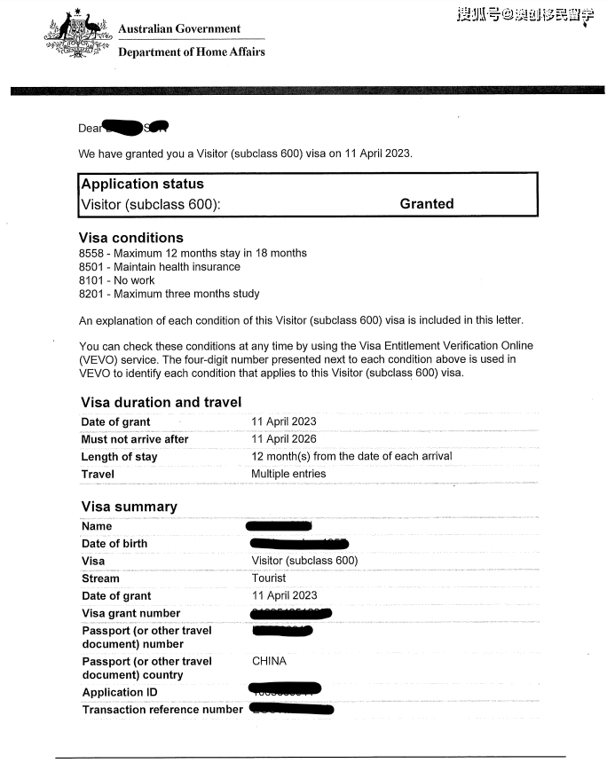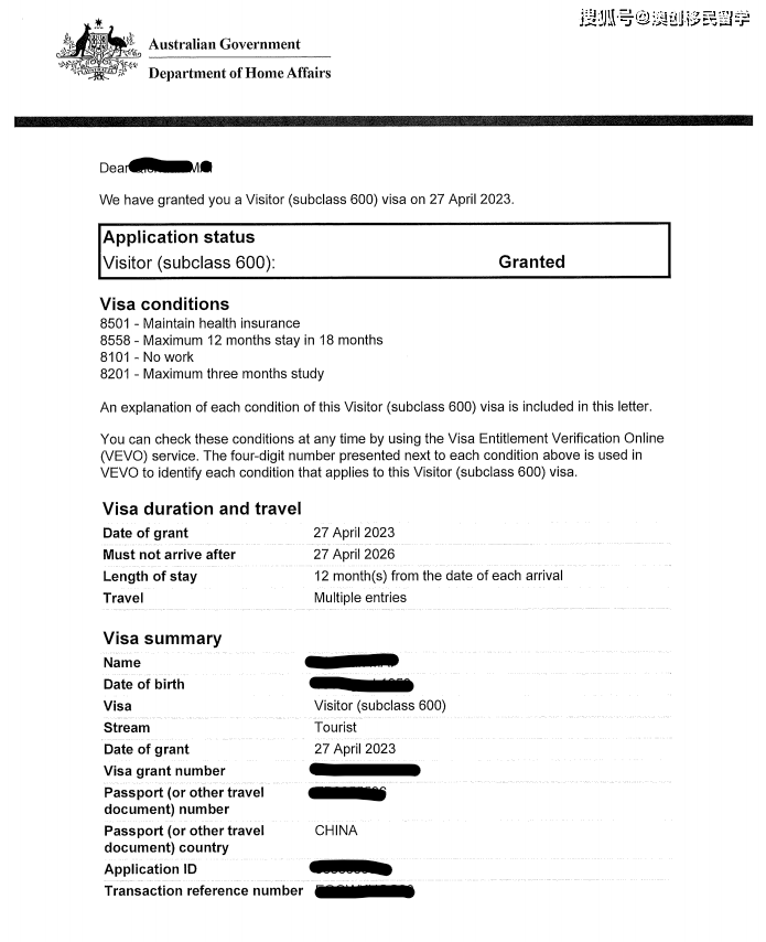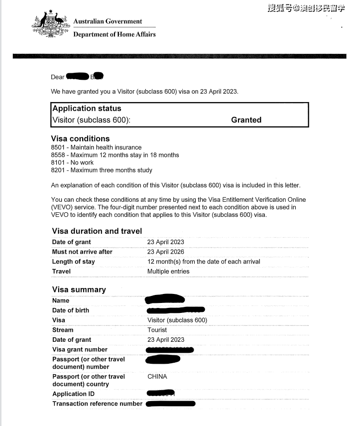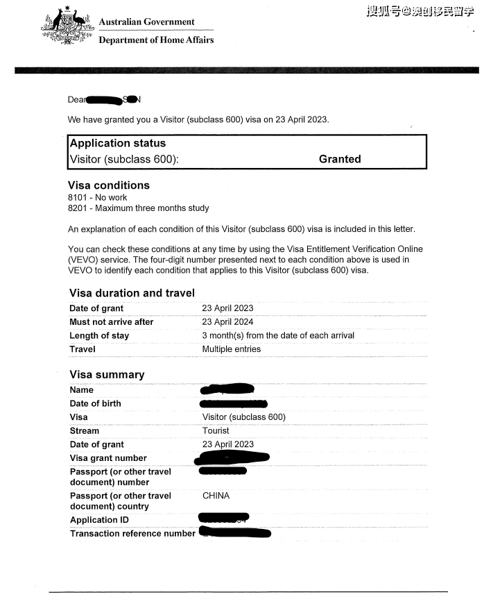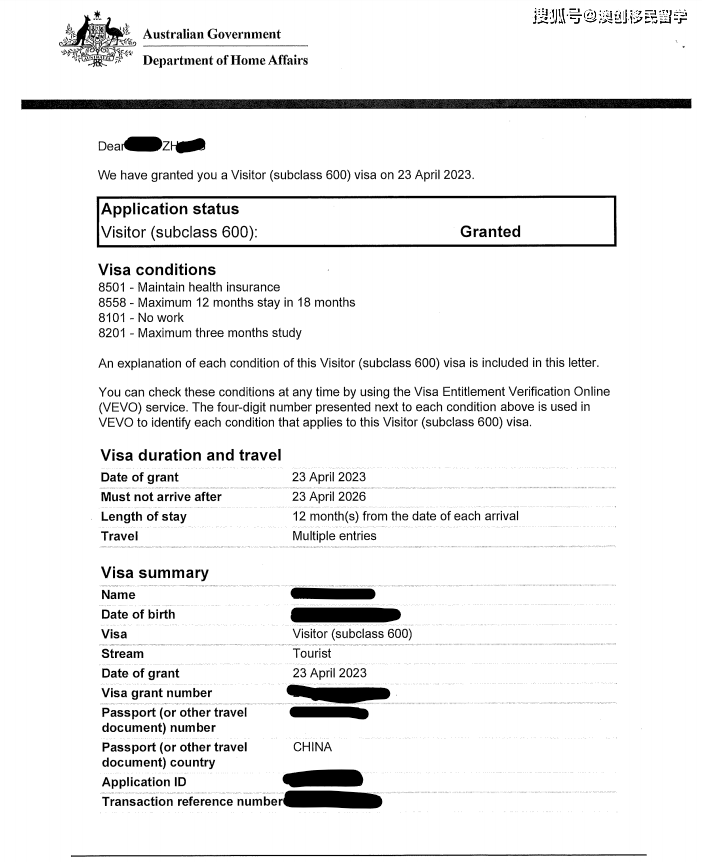 恭喜以下多位客户成功获批澳洲600签证!