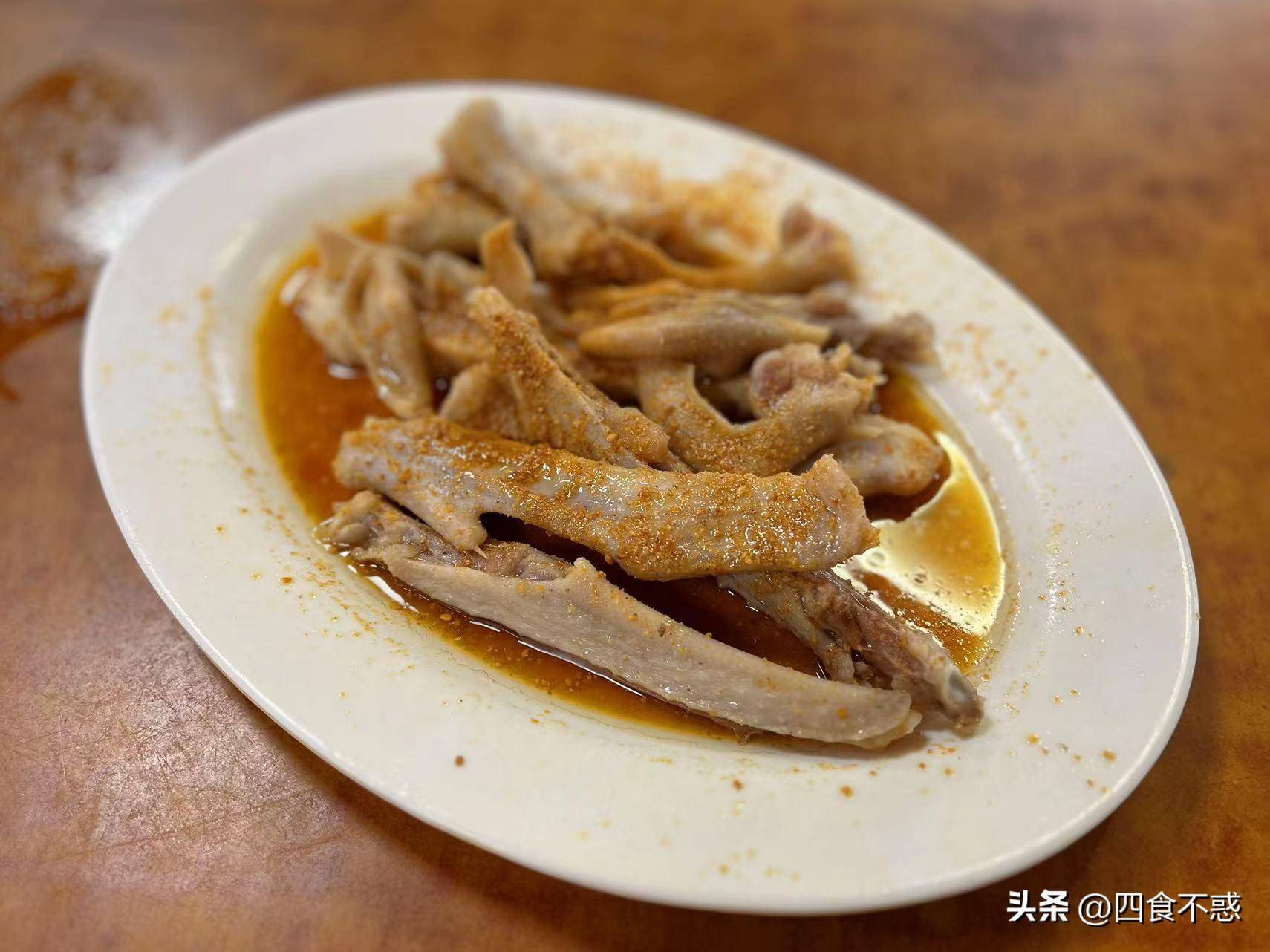 阳江人做鹅是一把好手,鹅掌翼一定得吃,直接上手抓起一条鹅翼,咬住肉顺着骨头一撕,一条爽美的鹅肉撕下,别提有多香了。鹅掌口感类似蹄筋,爽脆弹牙。