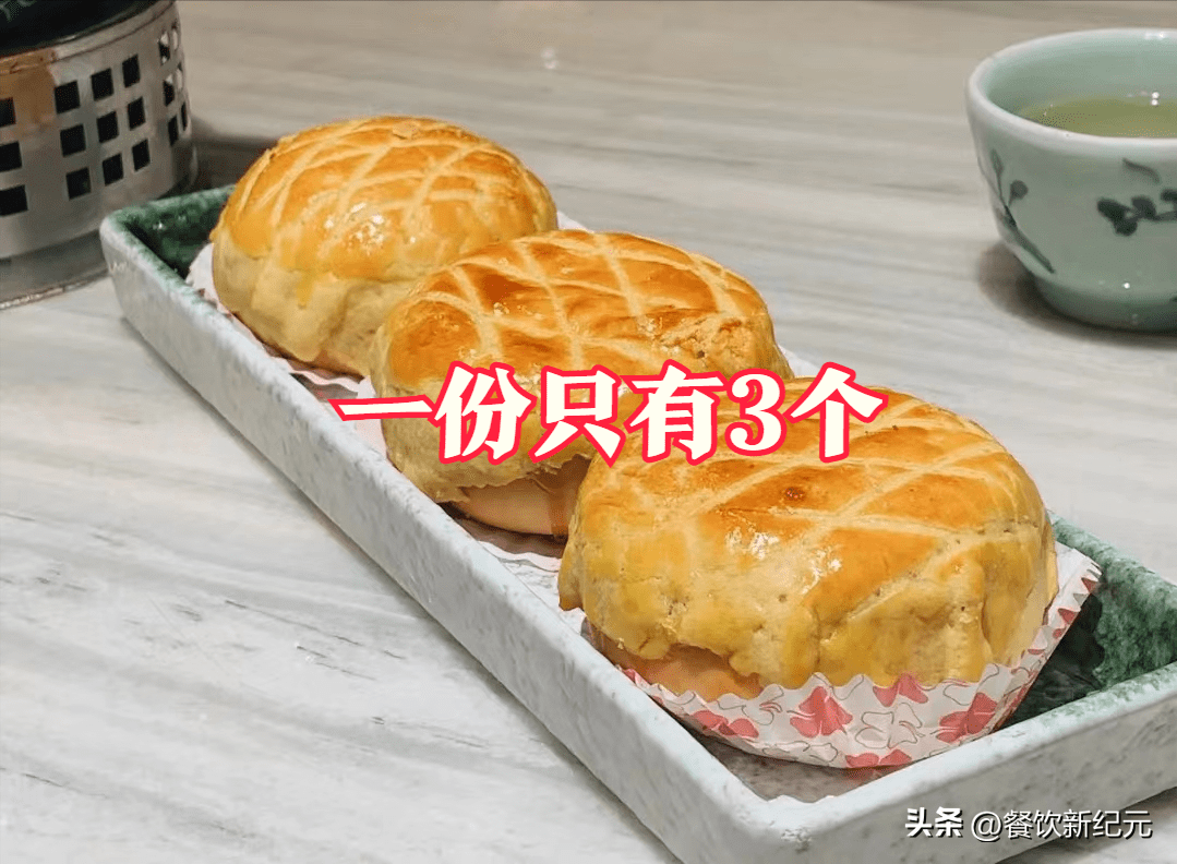 第二道菜很快也上桌了,同样的还是3个,虽然这份菠萝包的茶点卖相确实很精致,女子都忍不住拿起手机拍照,两个孩子看到后更是争抢着要吃。