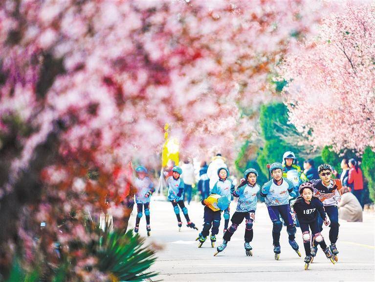 3月18日,河南省洛阳市,小运动员在中国小浪底轮滑文化节上参加轮滑马拉松比赛。