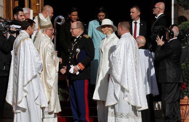 当地时间2019年11月19日,在摩纳哥国庆庆典期间,阿尔贝二世亲王和王妃夏琳等一众王室成员出席。