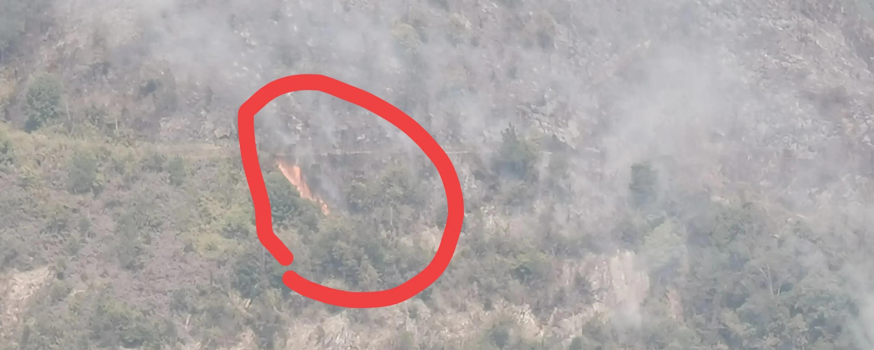 遇见第二件添堵的事是大事,在景区旁边的山火在燃烧(已经看见烧了一大片)据说昨天晚上就开始了,已经有火警消防人员组织灭火,火不大(可能是余火)相信会尽快扑灭。