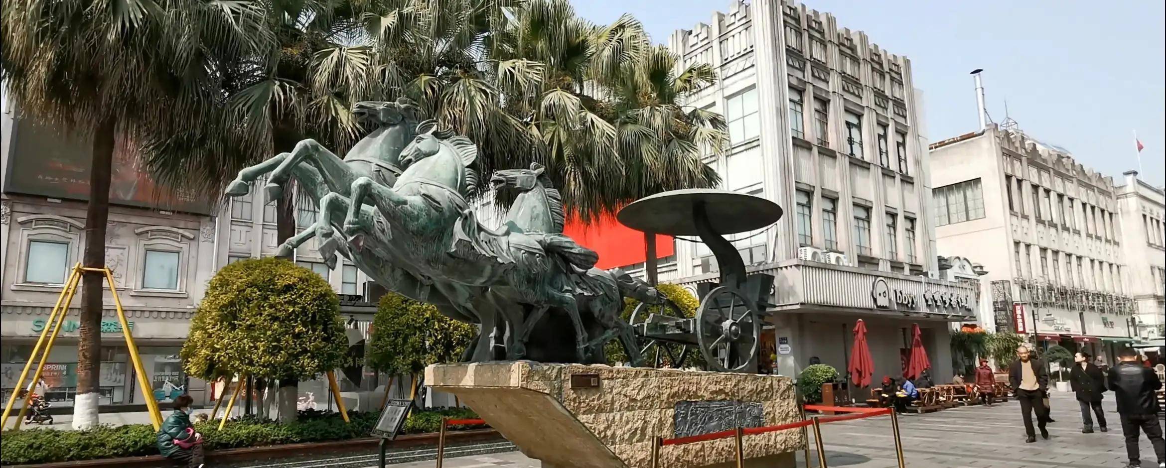 五马街名字的来历据说是谢灵运为永嘉太守,以五马自承,立五马坊。2002年,五马街矗立起一座五匹骏马拉着车帷的“五马奔腾”铜雕,如今已成为五马街的标志性建筑。