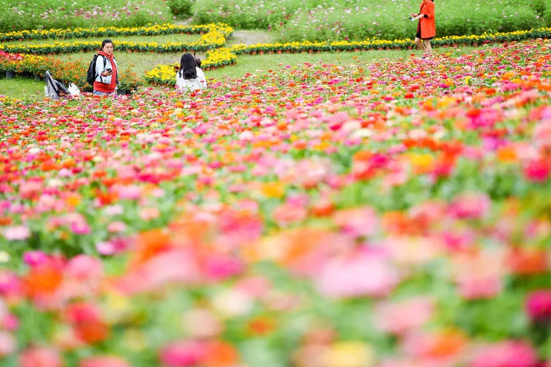桂花、百日菊、醉蝶花、粉黛草陆续登场