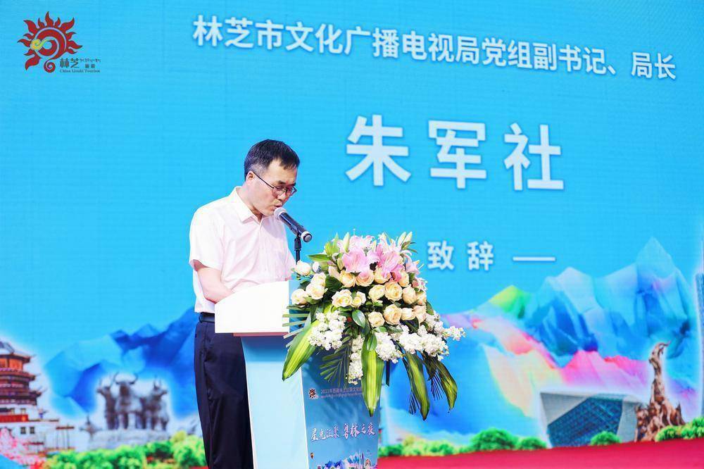 林芝市文化广播电视局党组副书记、局长朱军社在致辞中感谢了广东省的无私援助,这些援助助力了林芝文化、旅游、经济、科技、教育、卫生、体育等各项事业的快速发展。