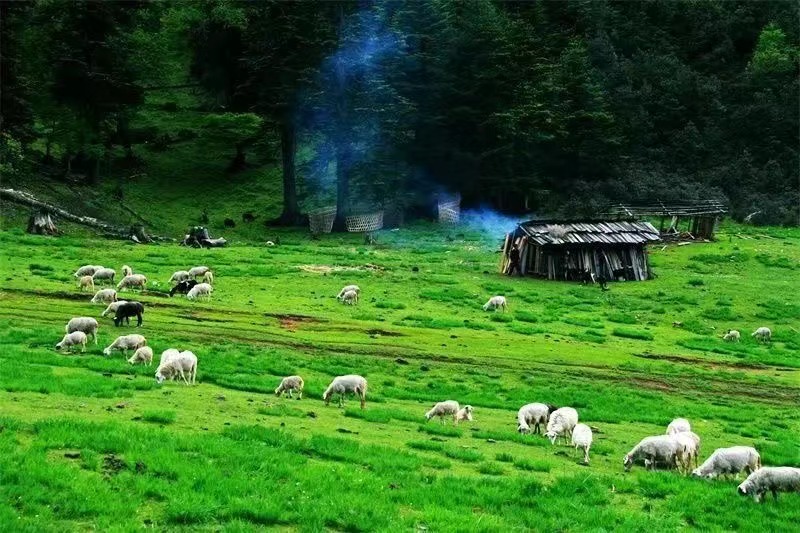 天高云淡,鸟语花香。碧草如茵的草甸上,溪水潺潺地流着,仿佛在吟唱着一首交响曲。高原牧场、情人坝、姑娘山、母亲树、百丈回音壁,美丽的风景看不完,风声水声、虫鸣鸟语听也听不够。