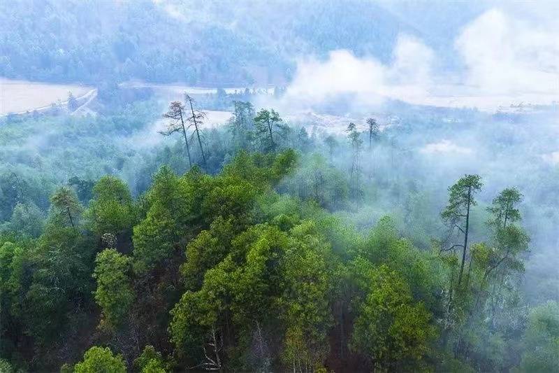 在天气晴好的春夏时节,约上三五个伙伴,乘车向大羊场进发,路上总有薄雾相随,它们时而点缀在山腰,时而环绕在车旁。路两边有数不尽的红杉、苍松、翠柏,或亭亭玉立,或弯腰迎客,或挥手相送,让人感到惬意十足。
