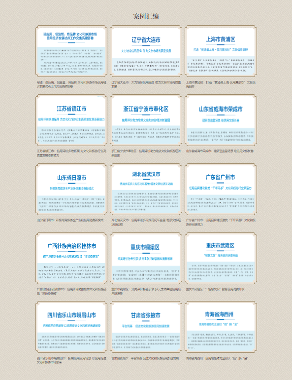 为进一步宣传推广文旅市场信用经济发展试点工作成果,彰显信用经济的意义和价值,近日,文化和旅游部于“5·19中国旅游日”在官网发布文化和旅游市场信用经济发展试点典型案例。