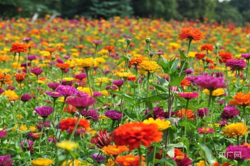 颜色各异的百日草在风中摇曳生姿(央广网发 重庆园博园供图)