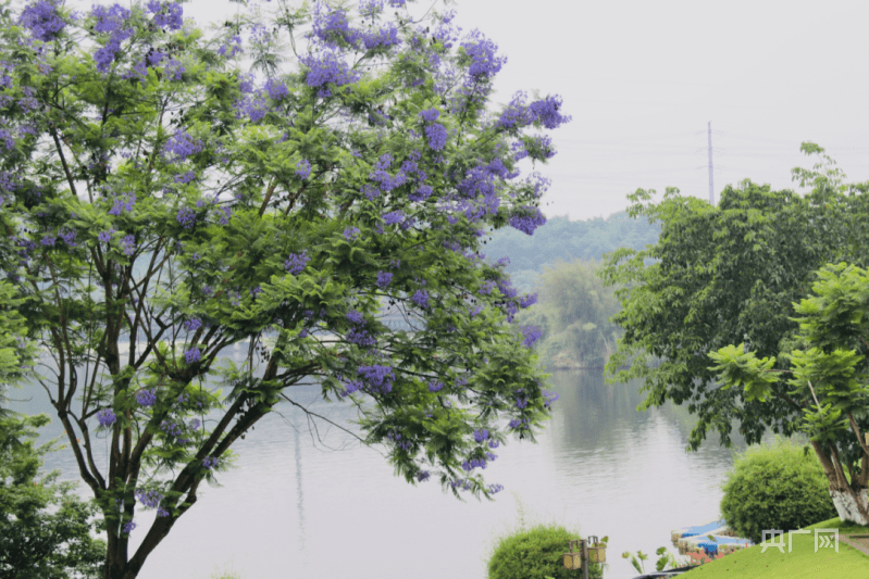 紫英轻轻,飘坠悠悠。近日,重庆园博园蓝花楹竞相开放,迎来最佳观赏期,随风飘落的蓝紫色花朵美不胜收,行走其中,如在画中,为初夏的园博园增添了一道蓝紫色的浪漫气息。