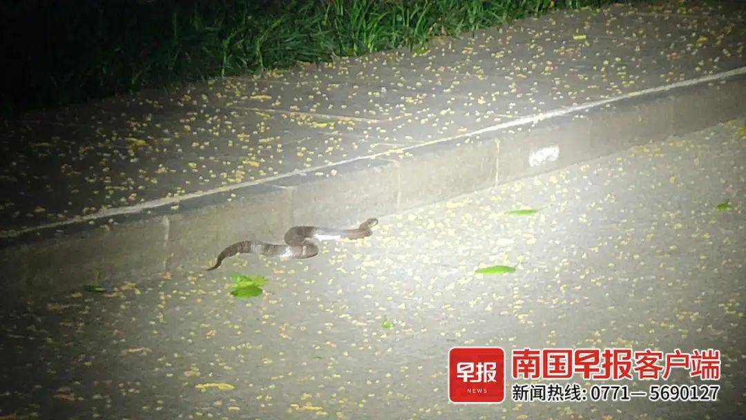 同时,建议市民夜晚游玩时尽量不要走偏僻小道,一旦发现有蛇类出没,不要惊扰蛇,请及时联系附近保安或者拨打公园保卫科电话:0771—5673207,会有专业人员处理。