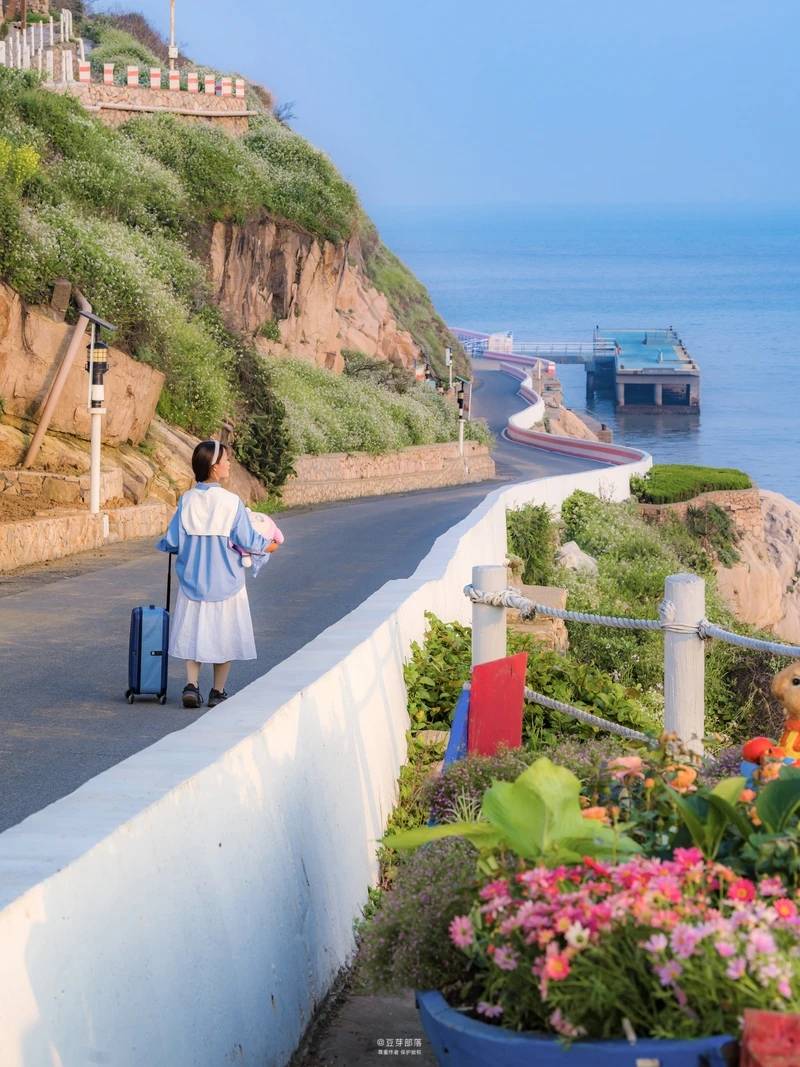 3、码头 非常出片的点,弯曲的公路,路边的鲜花,标志性路标,建议下午3-4点去拍