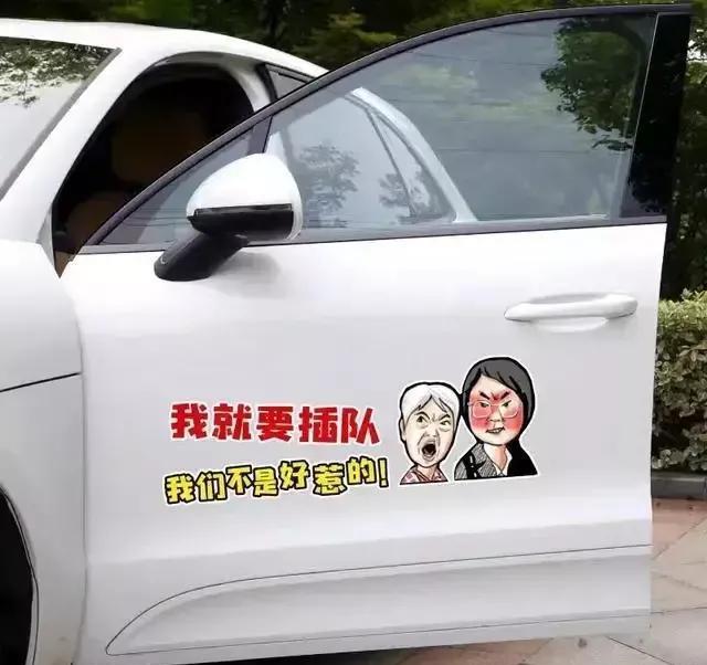 这件衣服是不是很霸气?不用说,他们成了霸道的代言人,也是插队的代言人。车门上的车贴,就问你同意吗?