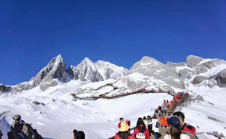 2、玉龙雪山:位于丽江市雪山之中,是北半球距离赤道最近的终年积雪的山脉。主峰陡峭,最高处海拔5596米。终年积雪,雪线在4800-5000米之间。离赤道最近的欧亚大陆上有温带海洋冰川。是纳西族的神山。相传是纳西族保护神“三多”的化身。