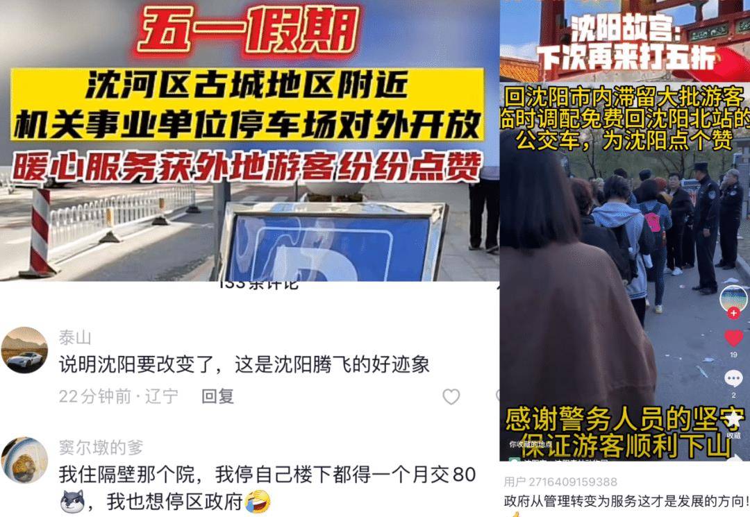 而对于其他城市正在积极推广的“旅游龙头迎客”、“免费公交”、“鲜花惊喜”等,沉阳却悄悄行动起来。五一假期第一天,就有游客在社交平台短视频发帖,表示收获“惊喜”,引来不少网友点赞。