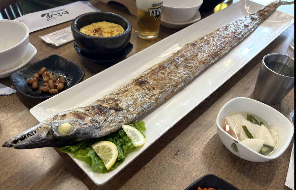 由于地处海岛,在济州岛上吃上几顿美味海鲜自然不是什么新鲜事。但济州岛上的白带鱼也绝对是在别的地方难得吃到的美味。这种白带鱼一半都生活在69米以下的深海,肉质极其软嫩可口,刚刚打捞上上来的带鱼甚至可以 做成刺身直接食用,而济州岛独特的整条带鱼烤制的做法更在视觉上能够个人一种独特体验。