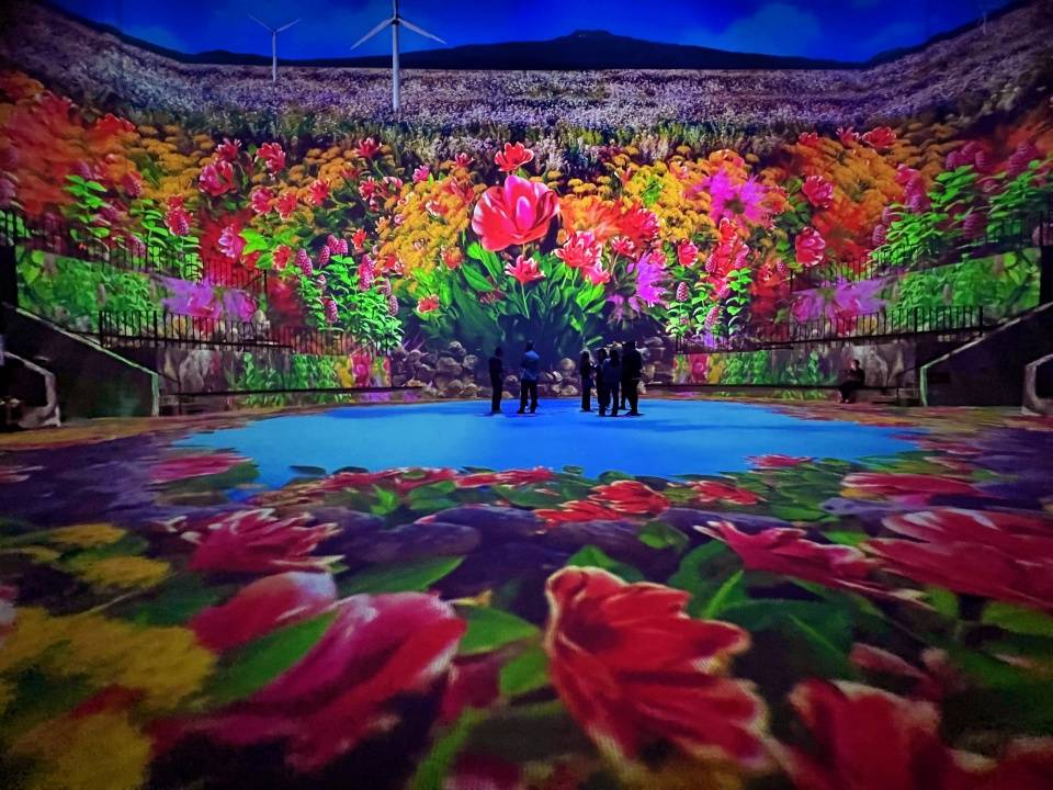 而经过黑白世界之后会逐渐进入多个五彩纷呈的光影空间,当来到核心展区后巨大的沉浸式光影能让人产生时空观穿梭的错觉,而七个主题的轮番展示也是让不同的游客人群都能感受到不同的视觉震撼。