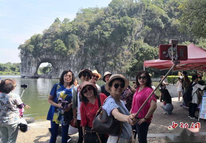 资料图:游客在桂林象山景区观光留影。 唐梦宪 摄