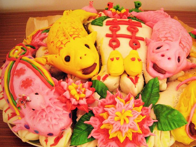 胶东大饽饽,一个足有一斤重。在勤劳的妇女手中,这种馒头不仅仅是饱腹充饥的食品,而成为一种面粉做的艺术品。各种各样造型、颜色的花式馒头,造型喜庆,口感新颖,既美观,又美味。